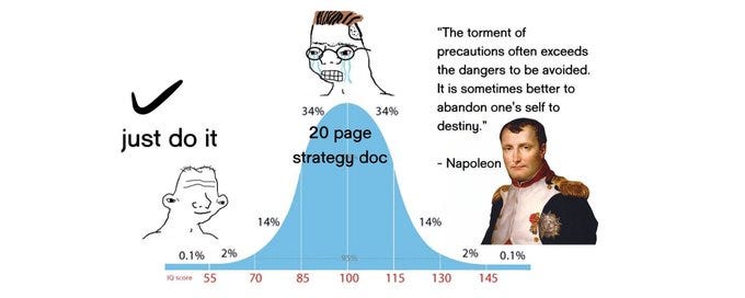 Let’s translate this: You’re smart enough to complicate things, but not really smart enough to realize you’ve made them worse and not solved the actual problem. Picture a bell curve and on the left, you’ve got people who see a problem and go “just do X.” They’re not paralyzed by nuance of any kind. They simply act. On the right, you’ve got genuine experts who’ve thought so deeply about the problem they’ve circled back to “just do X, but now I can explain why.” And in the middle? That’s the midwit. The average intelligent human drowning in caveats, exceptions, and “well, actually” reflexes that prevent you from doing anything at all. The person saying so much, yet nothing at the same time.